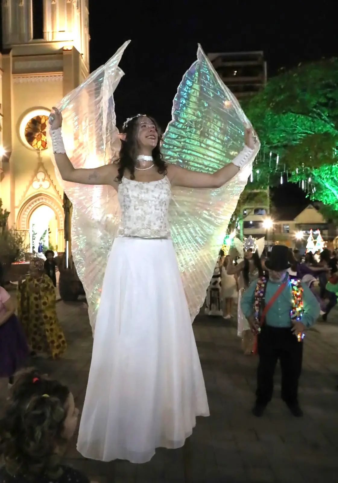 O cortejo prosseguiu pela Calçada da Fama, culminando na ornamentada Praça Baltasar da Silveira, em frente à Matriz de Santa Teresa. Com direção artística de Márcio Vasconcellos, o evento contou ainda com a criação de adereços e acessórios por Anderson Glória, que ajudaram a compor o visual encantador do cortejo.